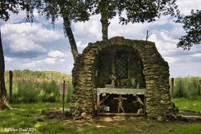 - Pour monter sur la fameuse colline de Rougemont, prendre à gauche (600m Aller/Retour). Au sommet, oratoire et beau panorama sur Argenvilliers. Puis redescendre et reprendre à gauche la D 371.3. 200m plus loin, descendre à droite vers la Rousselière et passer la ferme du Boulay.